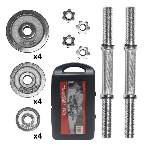 Entrená fuerza y tonificación donde quieras con el maletín de mancuernas y discos de 20 kg, un set completo y portátil diseñado para rutinas versátiles, tanto en casa como en el gimnasio. Este kit incluye todos los elementos necesarios para un entrenamiento equilibrado, permitiéndote ajustar la carga según tus objetivos y nivel de experiencia. Contenido…