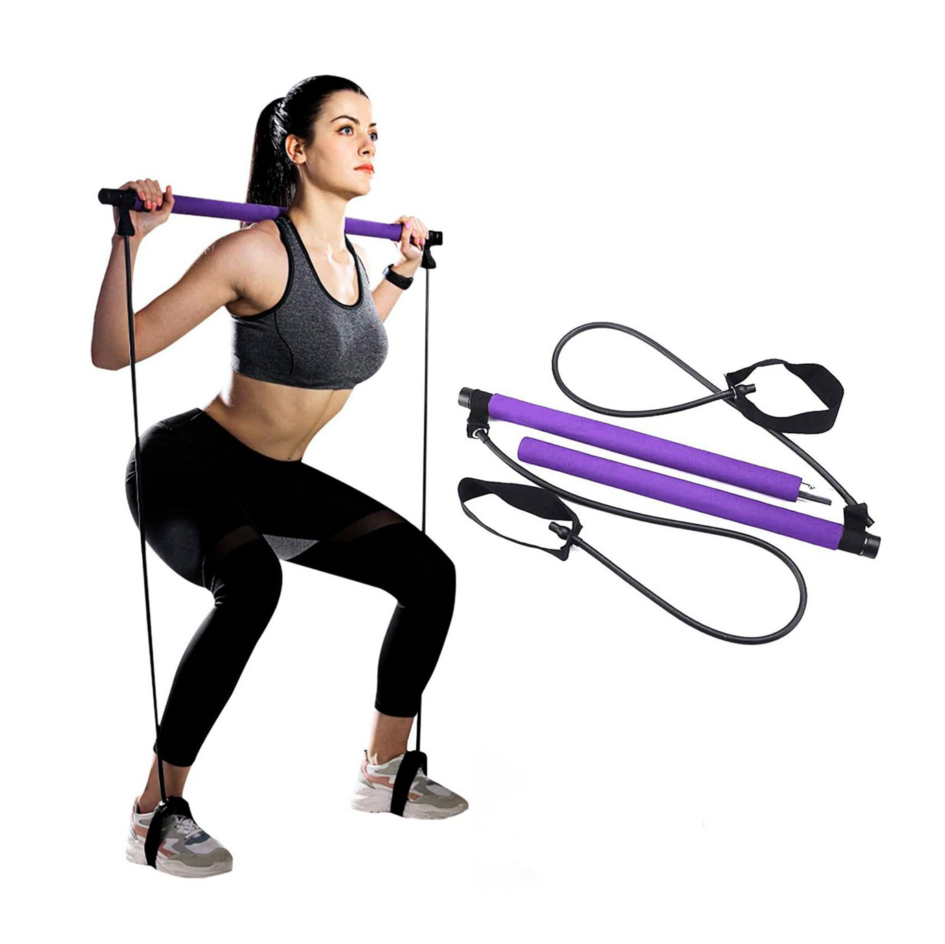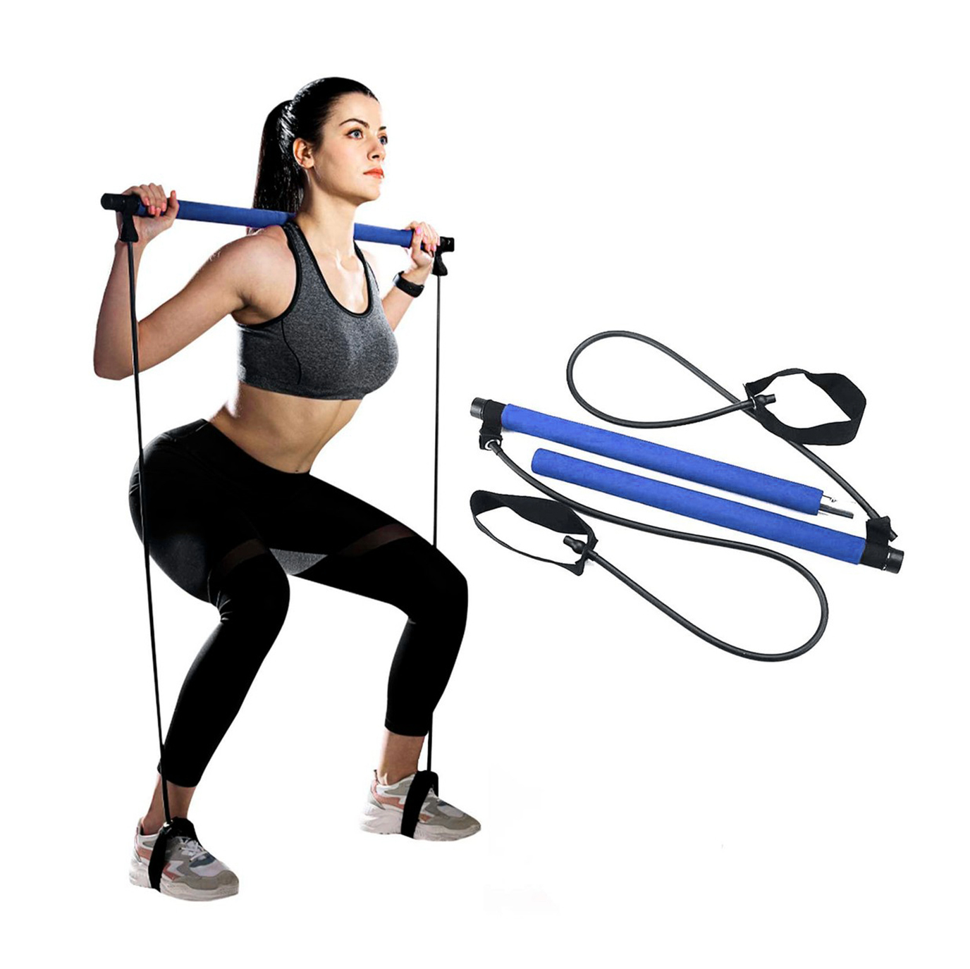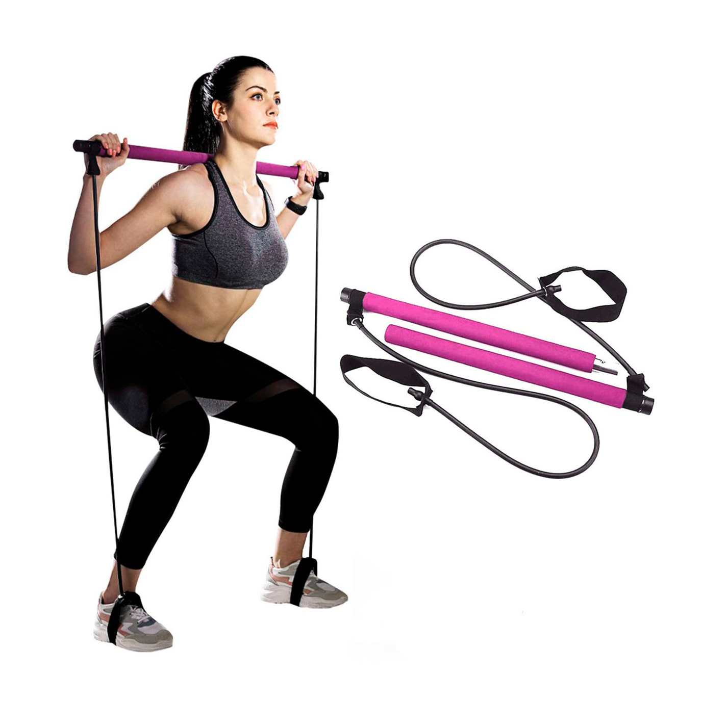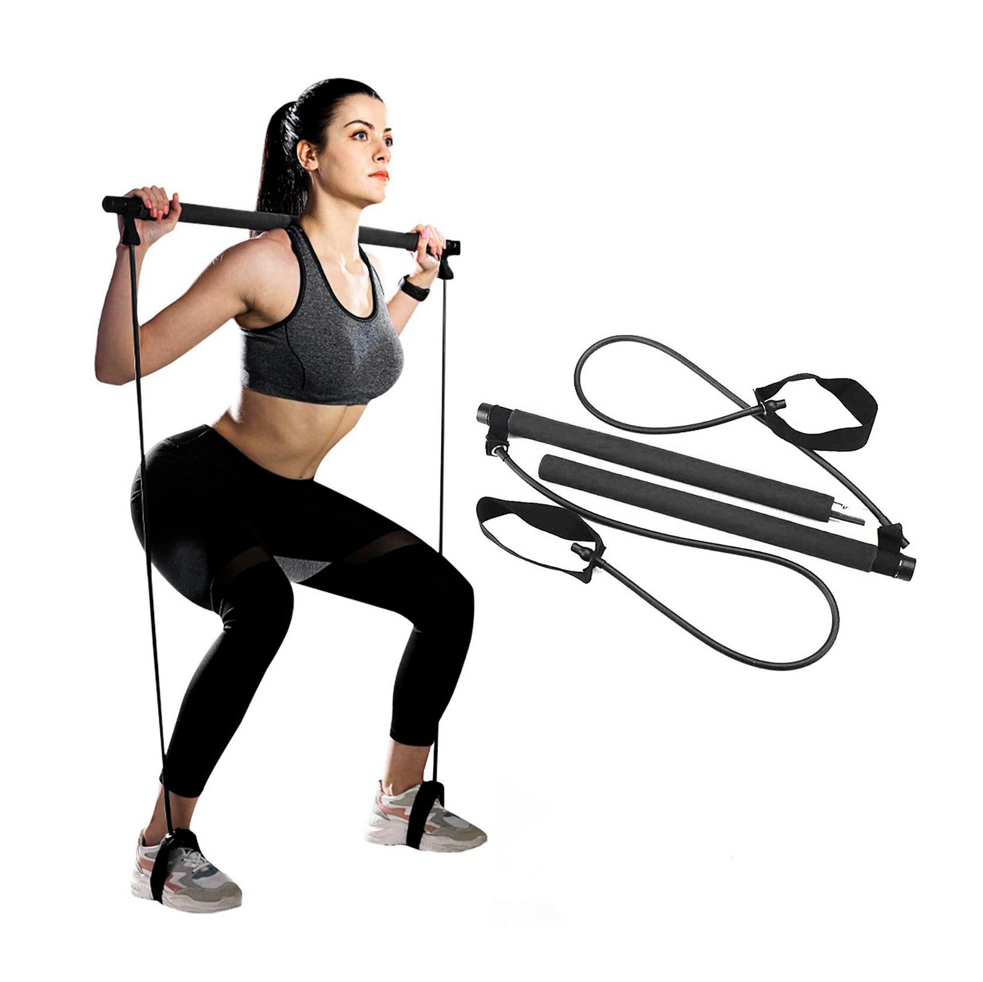 – Puede reemplazar una barra, una banda de resistencia, o una máquina de torsión para hacer sentadillas, press de banca, curl, remo, etc.