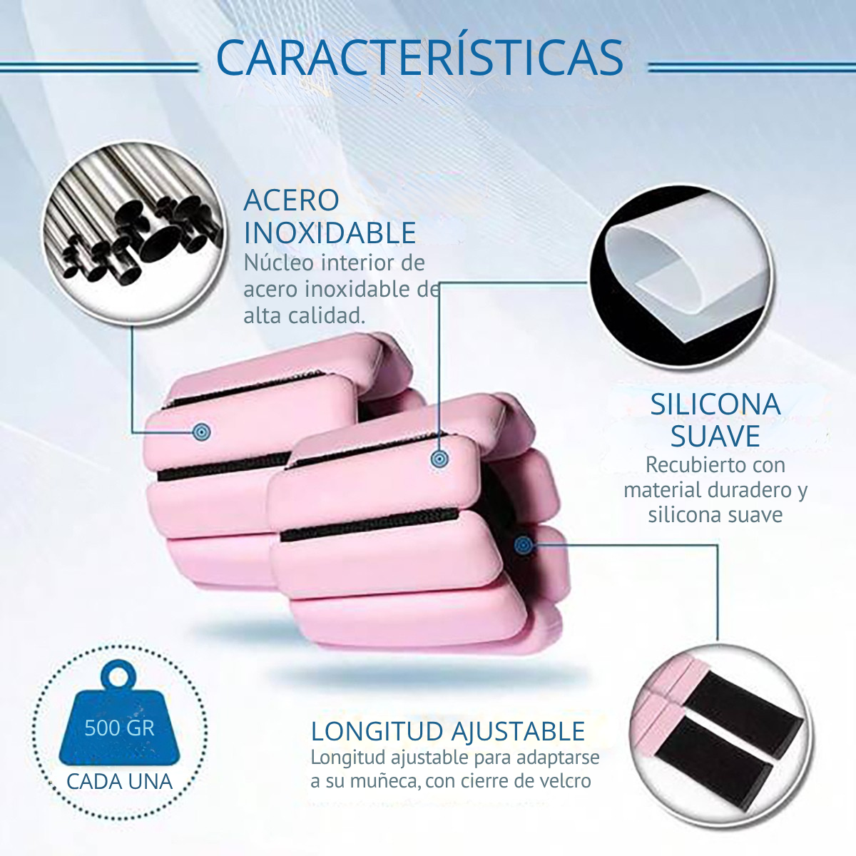 - Peso: 500 g por unidad (1 kg el par)