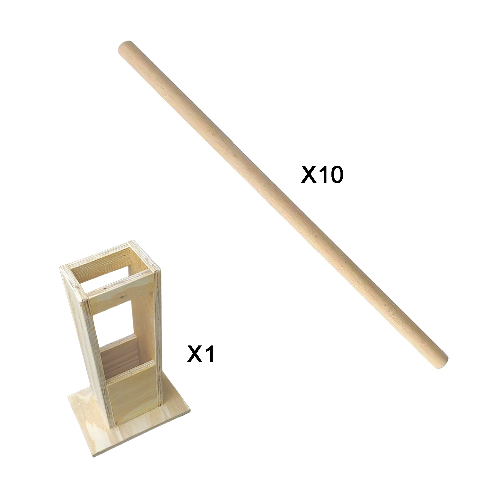 - Incluye: base de madera + 10 bastones posturales