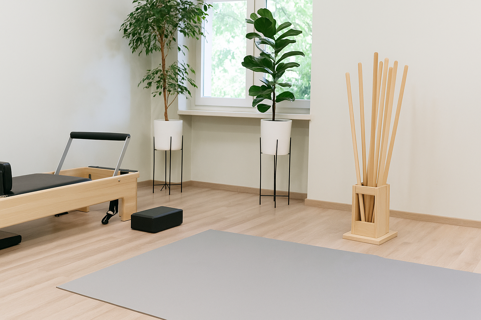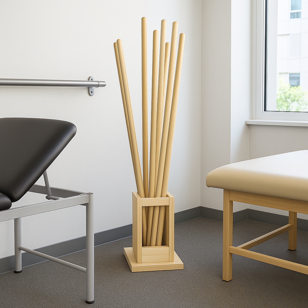 Completá tu espacio de entrenamiento con el kit de 10 bastones posturales con base de guardado. Ideal para estudios de yoga, gimnasios, centros de rehabilitación o uso personal, este set permite mantener los bastones organizados y listos para usar en tus rutinas de movilidad, elongación o trabajo postural.