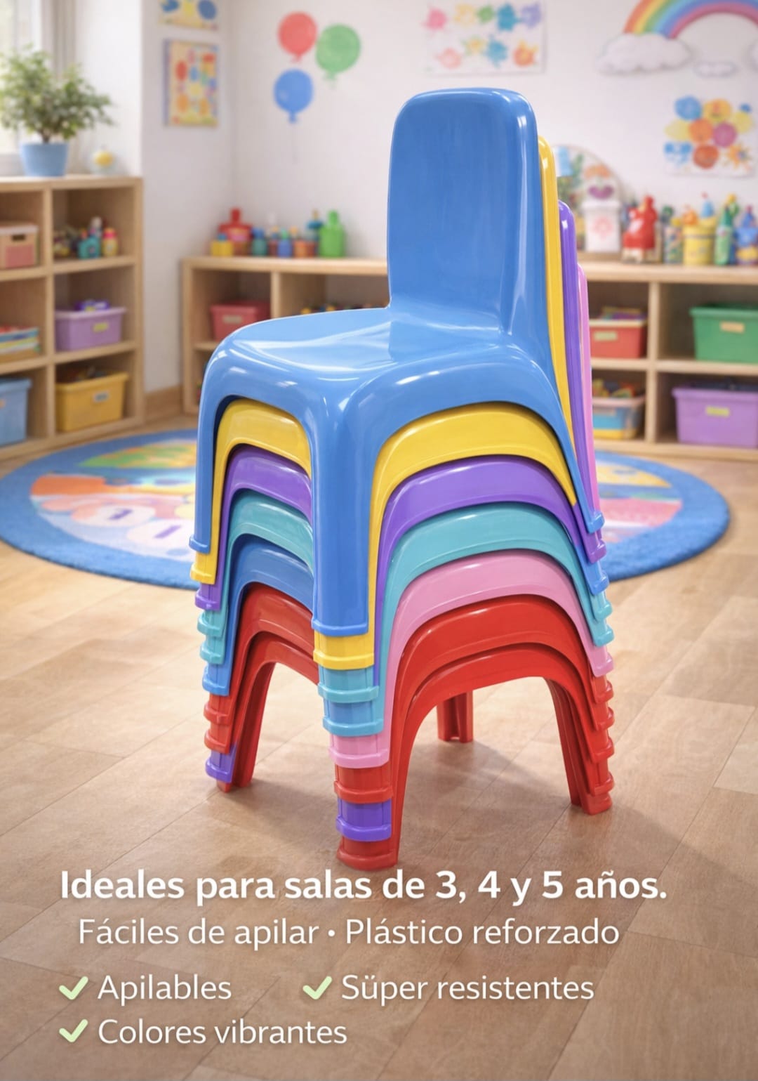 ¡Calidad y resistencia para los más chicos! Nuestras sillitas de plástico reforzado (PVC) están diseñadas específicamente para el uso intensivo en entornos educativos y recreativos. Su estructura ergonómica y material de alta densidad garantizan una larga vida útil, manteniendo la seguridad en todo momento.